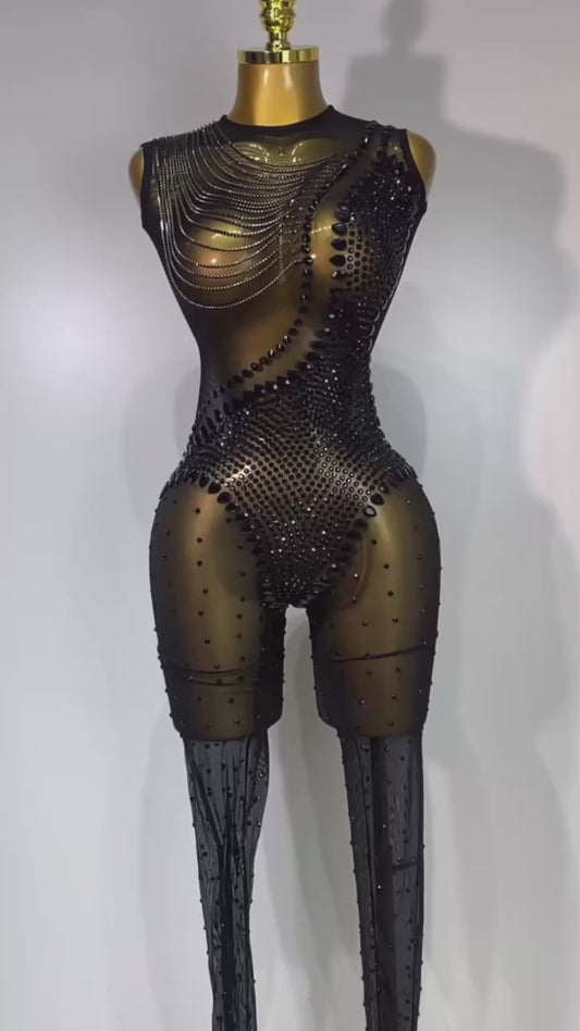 Jazmidnite stones sheer jumpsuit