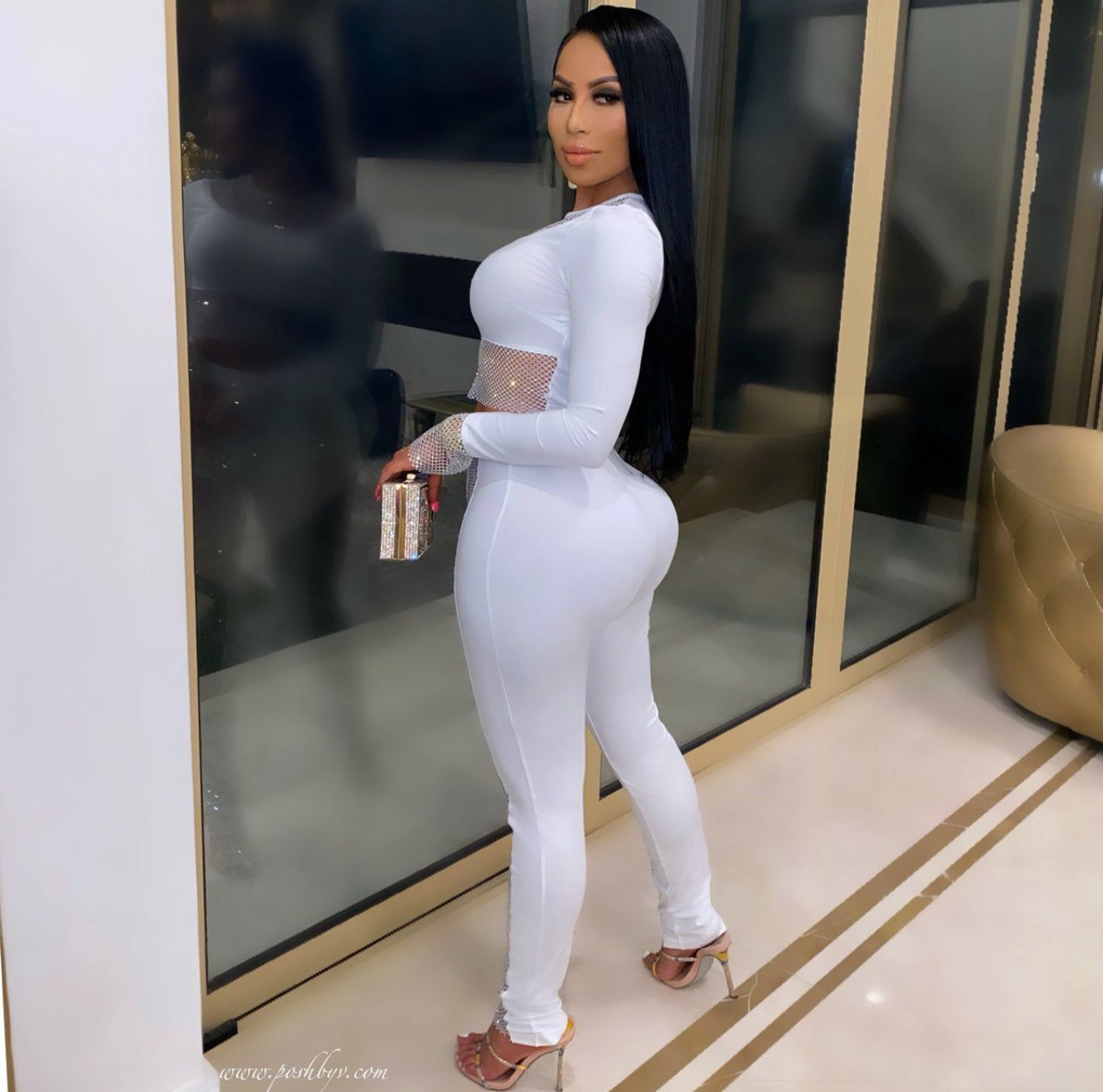 - Product design/details: long sleeve rhinestone double streaks area top and bottom skin hugging leggings set