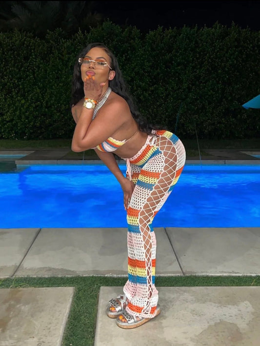 Ruggedly stress crochet pants set