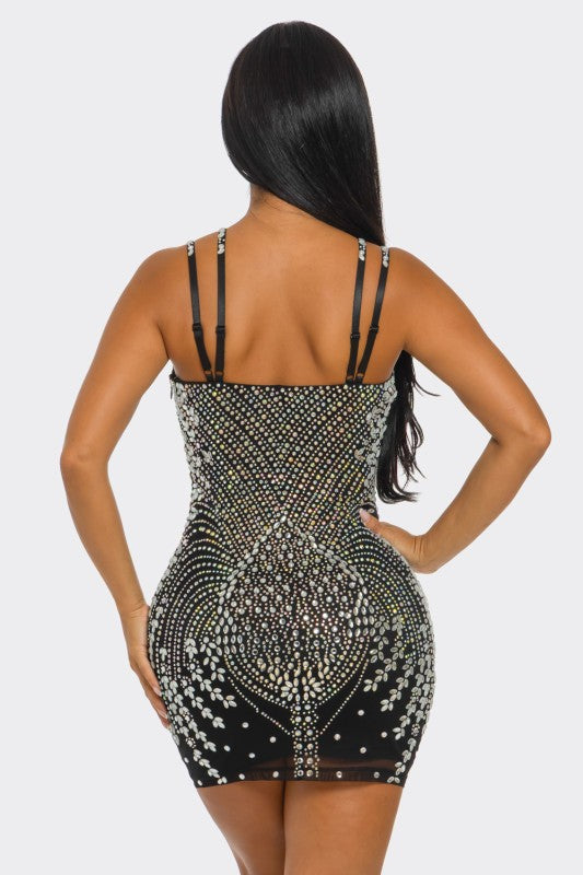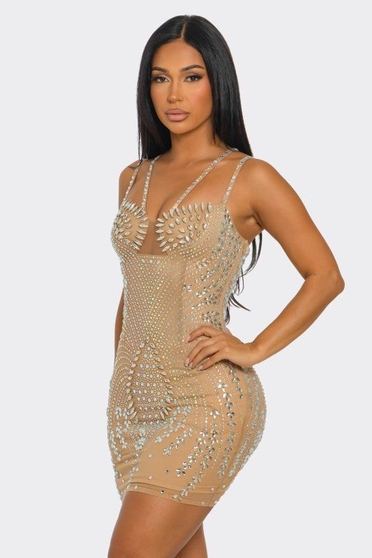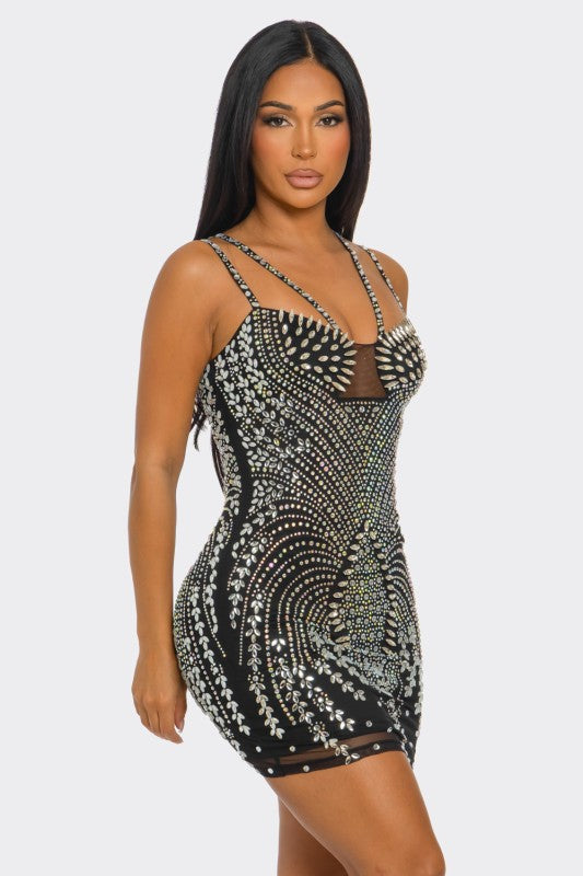 Rezzeltra studded rhinestone mini dress